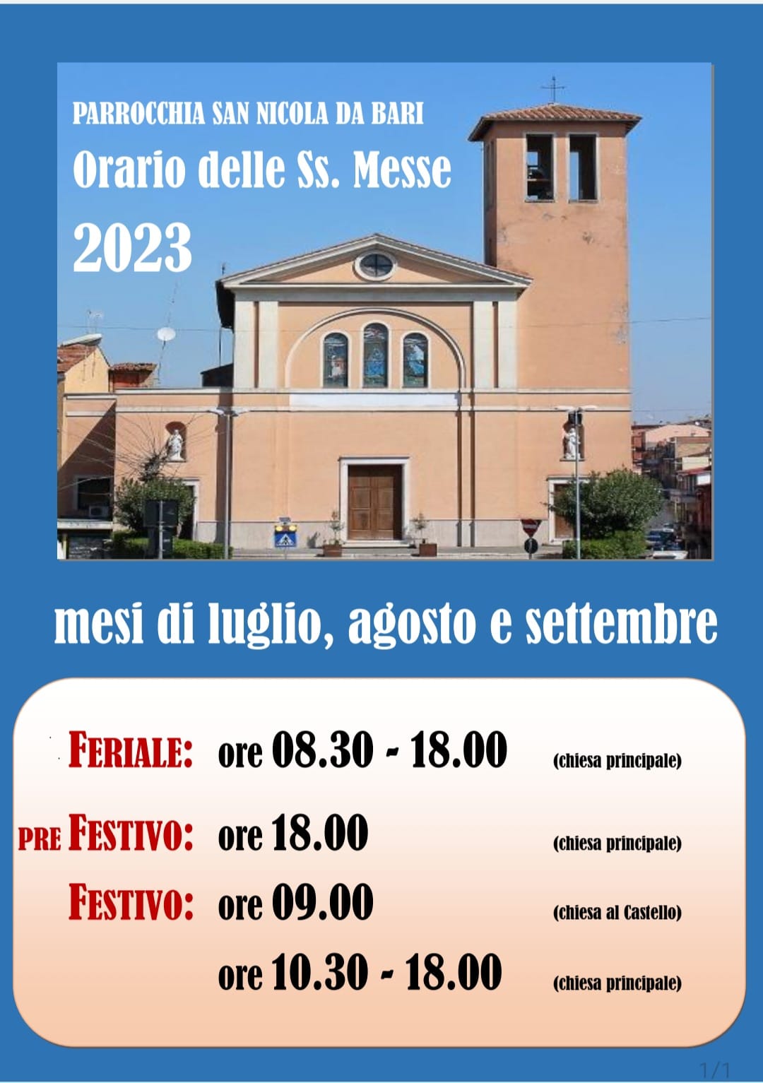 Liturgia Nuovo Orario Celebrazioni Eucaristiche 1 Luglio 2023 Posted by Elia del Rosso 26 Giu Buongiorno, Di seguito gli orari delle Celebrazioni a partire da questa settimana.