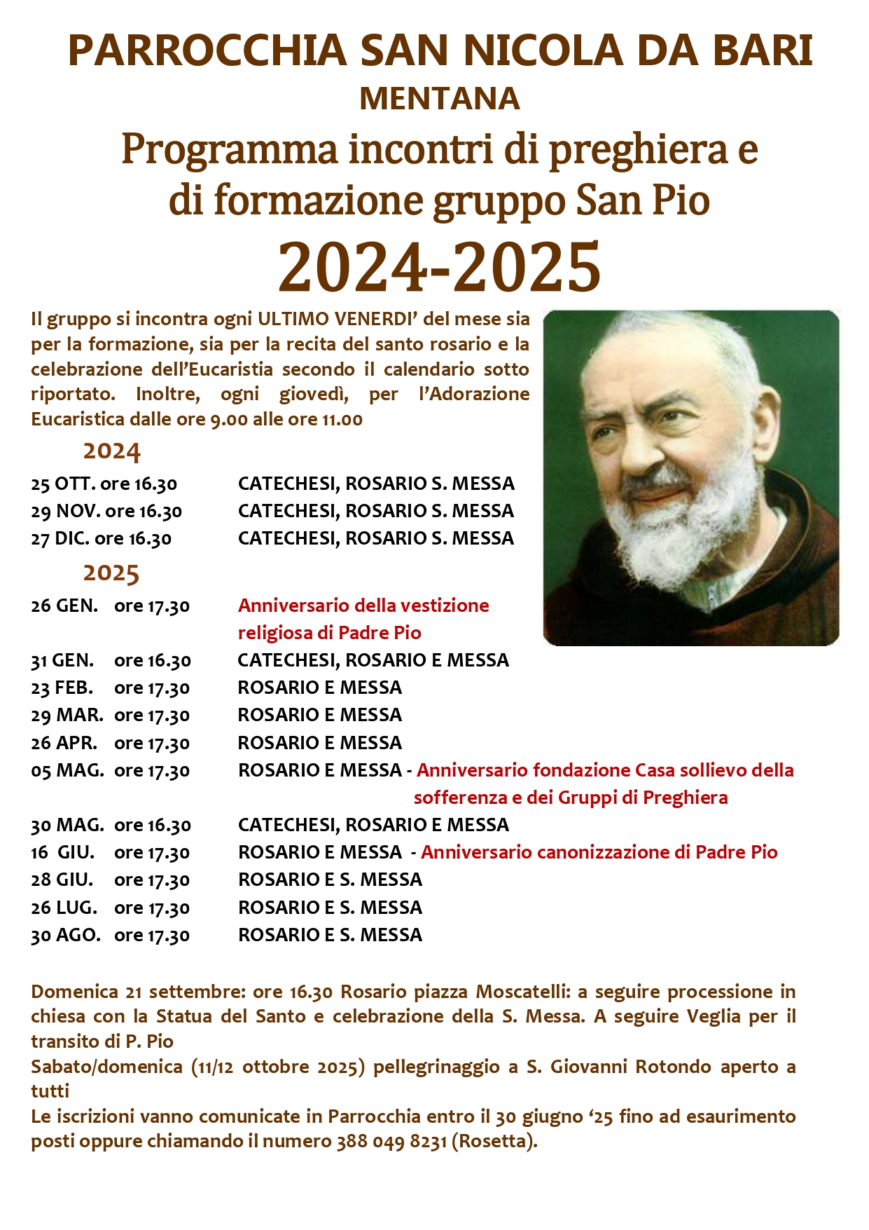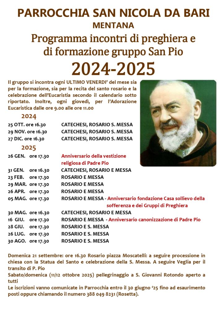 Calendario attività “Gruppo Padre Pio” 2024-2025